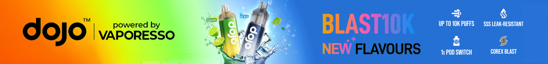 The DOJO Blast 10K is the latest addition to the range of DOJO by Vaporesso vape kits, offering up to 10,000 puffs per pod & refill change. Each device comes with a 2ml prefilled pod and an 8ml refill, for a total of 10ml of 20 mg/ml vape juice. The DOJO Blast 10K features a 1000 mAh rechargeable battery and is compatible with the range of DOJO Blast 10K replacement pods.